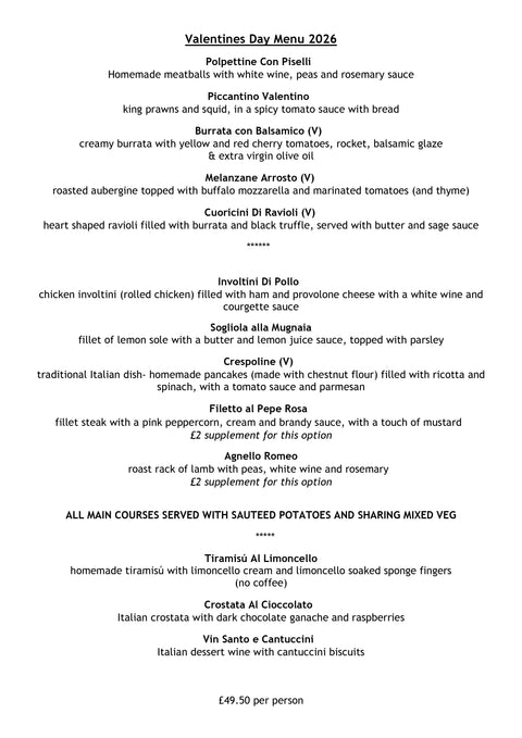 • Valentine's Menu (Trattoria)